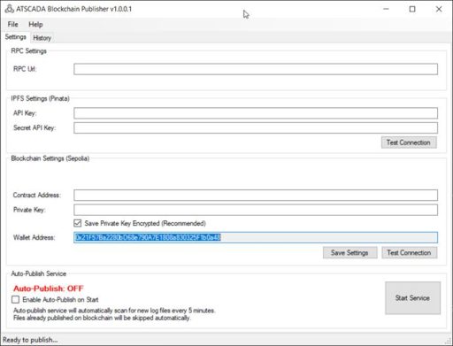 A decentralized crypto wallet such as MetaMask is required to perform publish transactions for ATSCADA Blockchain.