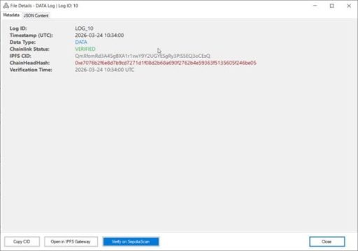 Recomputes hash chaining → Compares with ChainHeadHash on the blockchain.