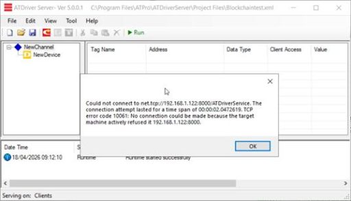 Error When Running ATDriverServer & iTagBuilder with TagNames Continuously Showing BAD Status or Unable to Read Values