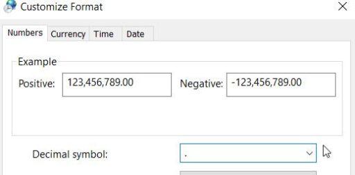 => In this case, the cause is that the Number Format of the computer running the software is incorrect. To fix this, go to