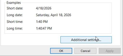 Control Panel => Change date, time, or number format in Clock Region