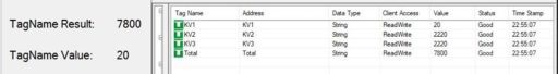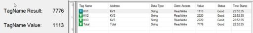 As shown, the TagName Result currently has a value of 7776, and the TagName Value currently has a value of 1113.