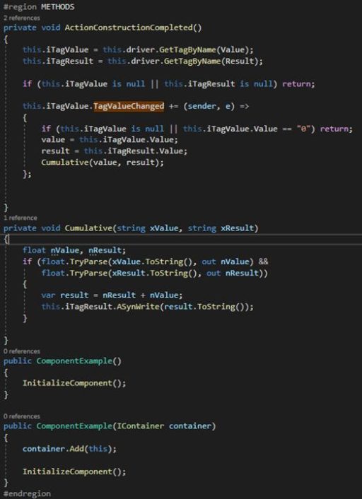 This ATSCADA Custom Component is designed to automatically accumulate values from a source Tag (Value) into a destination Tag (Result) whenever the source Tag changes. It is commonly used for calculating total production output, total flow volume, or power consumption with support for secure industrial data management.