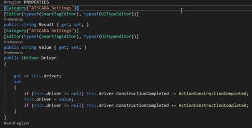 [Category(“ATSCADA Settings”)] [Editor(typeof(SmartTagEditor), typeof(UITypeEditor))] public string Result { get; set; } [Category(“ATSCADA Settings”)] [Editor(typeof(SmartTagEditor), typeof(UITypeEditor))] public string Value { get; set; }- Purpose of the two Properties:
