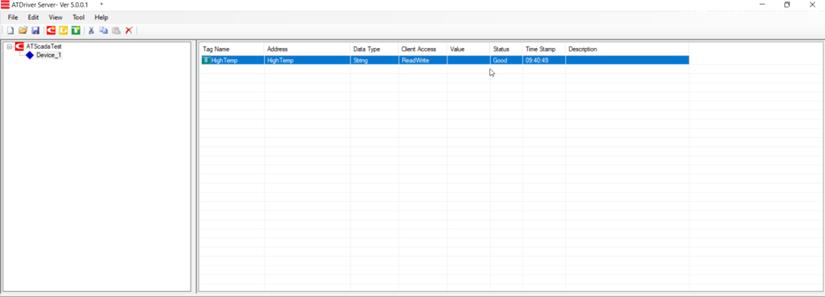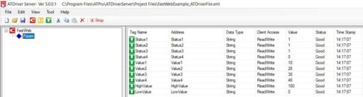 When the status changes from Stop to Start, the tag values are read and updated in ATDriver Server.