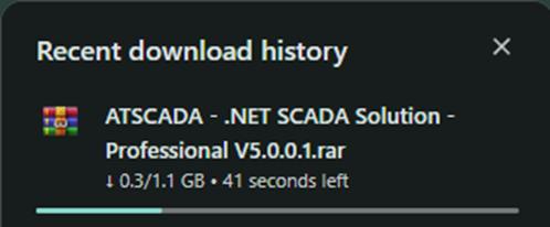 During the ATSCADA installation guide process, the browser download section will display the file currently being downloaded.