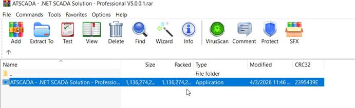 ATSCADA .NET SCADA Solution Professional v5.0.0.1 compressed file opened in WinRAR