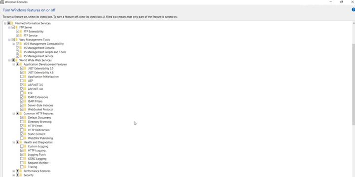 Windows IIS Application Development Features with ASP.NET, ISAPI Extensions, and WebSocket Protocol selected