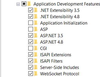 Important Note: To support ATSCADA running on the .NET Framework 4.5 platform, expand World Wide Web Services > Application Development Features and enable the following options during the ATSCADA installation guide process: