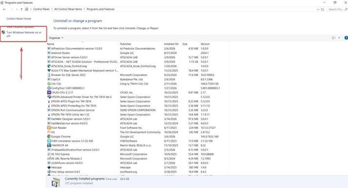 Locate Internet Information Services (IIS) and check the box to enable it during the ATSCADA installation guide setup process.