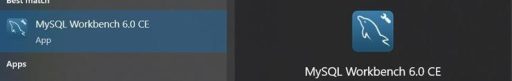 After all installation steps are completed successfully, search for MySQL Workbench in the Windows search bar and open it.