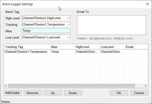 - Tracking: Select the TagName used for comparison with the High Level and Low Level thresholds.