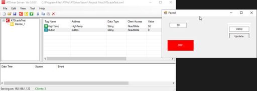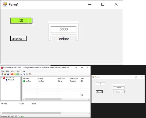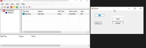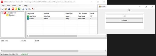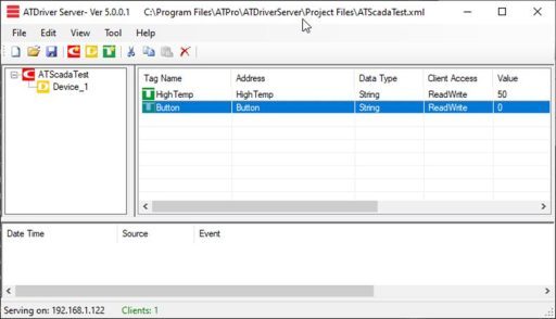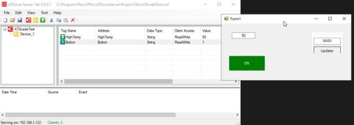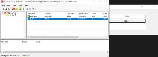 Write a test value to the HighTemp Tag in ATDriver Server.