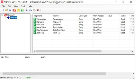 Create a new ATDriver Server file with the following Tags (Data Type: String/Double):