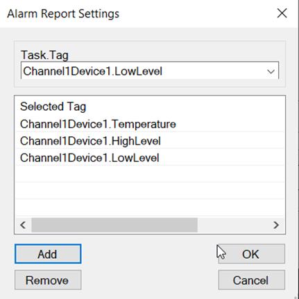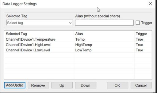 - Selected Tag: Choose the TagName to log.