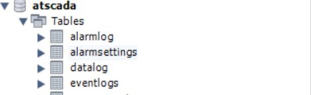 • Results: After setup and testing, check the database; tables such as alarmlog and alarmsettings should be present.