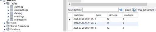 The data is logged into the alarmlog table in the database by ATSCADA iTools.