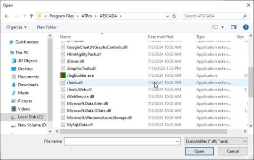Select the ATSCADA iTools.dll library from the following path: