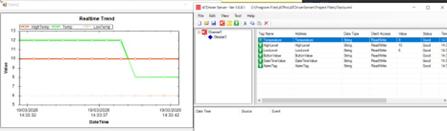 Increase the value of the Tracking TagName to 14 to simulate a high-limit alarm, then reduce it to 10 to return to normal status, and finally lower it to 4 to simulate a low-limit alarm in ATSCADA iTools.