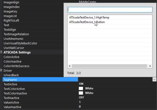 Select the newly created Button Tag in ATSCADA iTools.