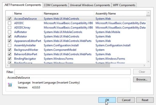 Select Browser to proceed to choose the correct library: