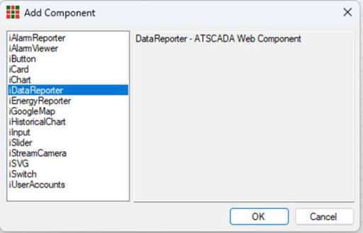 Create the component, then select iDataReporter.