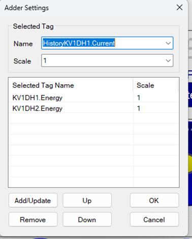 The TotalKVx tools are used to sum the energy values of the meters within the same area in the ATSCADA Power Management System, with the following configuration steps: