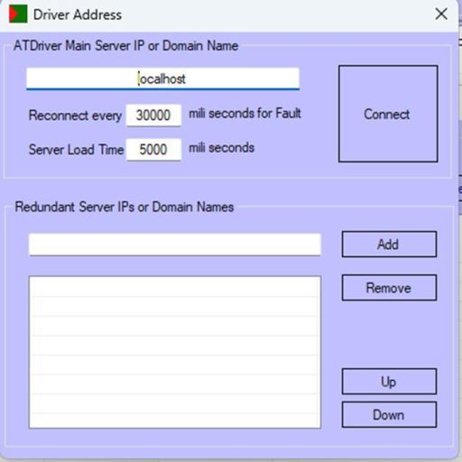 Use localhost if you’re using your computer’s IP address; otherwise, enter the address of the server running ATDriverServer.