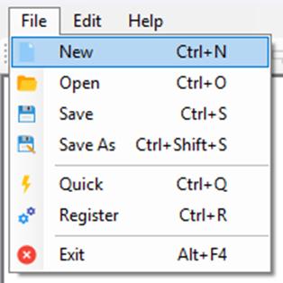 To create a project, click File -> New.
