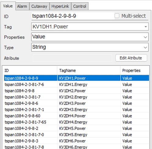 In the Properties section, select Value to display the Tag value on the Web for the selected component in the ATSCADA Power Management System.