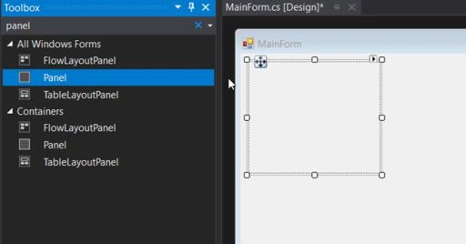 First, we need to drag the Panels (located in the Toolbox) to divide the layout for the MainForm.