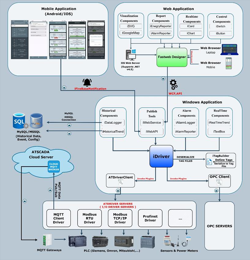 A key advantage of ATSCADA Software is support for both modern IoT standards and traditional industrial communication.