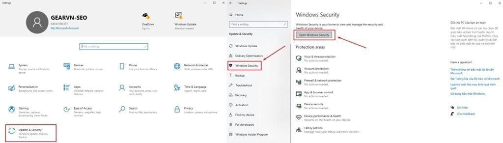 Chọn mục Windows Security và nhấn chọn Open Windows Security.