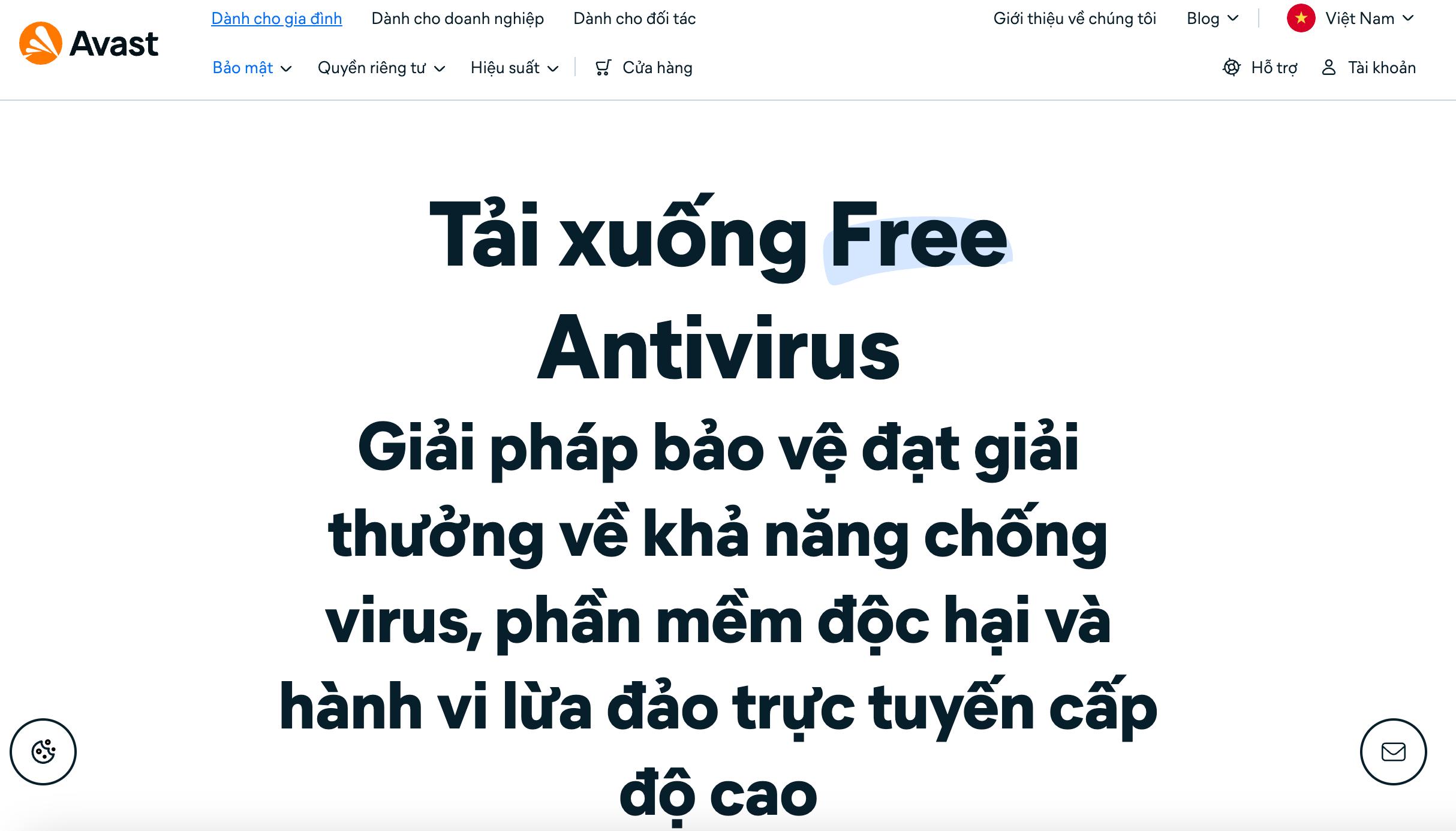 Bước 1: Truy cập vào trang Avast Free Antivirus.