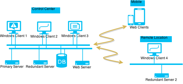 - Windows clients are used in control rooms for full monitoring and control.