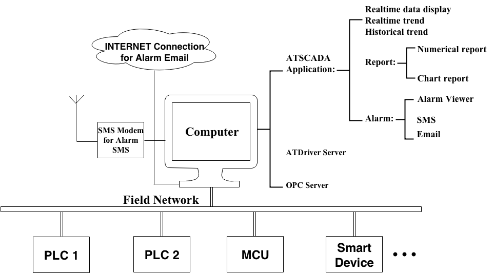 A standalone ATSCADA system is well-suited for independent production machines and small industrial facilities, similar to an industrial process monitoring system